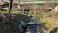 上記看板を過ぎて坂を下るとすぐに大きな橋に差し掛かります。これを通過します。正面にはやはり今久保集落が見えてます。